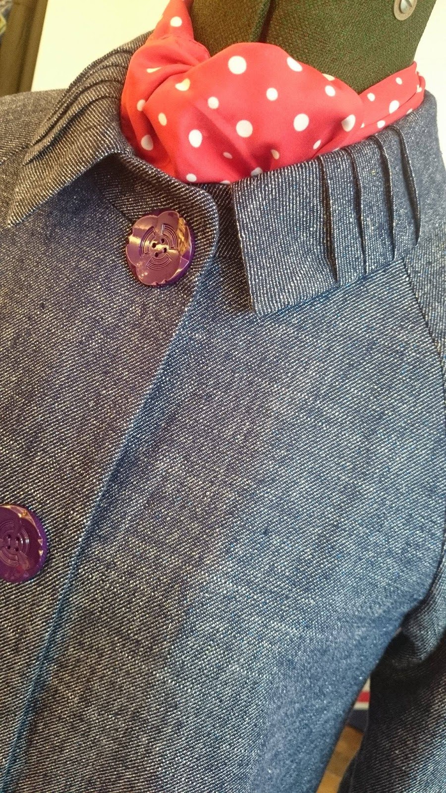 ブルーの色が鮮やかな、machiko jintoならではの春らしいコートですインナーに柔らかなブラウスや、パンツ等で、カジュアルに装ってみてはいかがでしょうか。